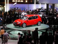 で、会場に着いたらまずVWブースへ(^^; Golf2からいきなり飛んで、 これが最新のゴルフです。 もう五世代目なんですね。 事前に配信されていたプレスフォトより、 実物は格好よかったです。あの写真は、危険です。 この目で見るNewGolfはあんなに ギョロ目の寸詰まりではなかったです。 ということで、実物を見て一安心。 |
