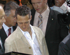 プレスデー、ということで、いろんなVIPも きていたのでしょう。私にも顔がわかる人は ほとんどいない、というのが事実ですが。。 で、会場をうろついていたら、 週末のイタリアグランプリを前に、 フェラーリブースにシューマッハーが現れました。 すんごい人だかりで、ほんの数分でVIPルームと思しき 部屋へ消えました。 モンツァでは勝ててよかったですね。 |